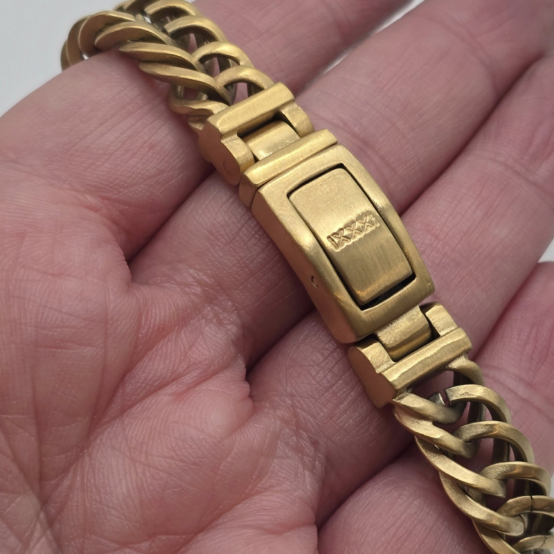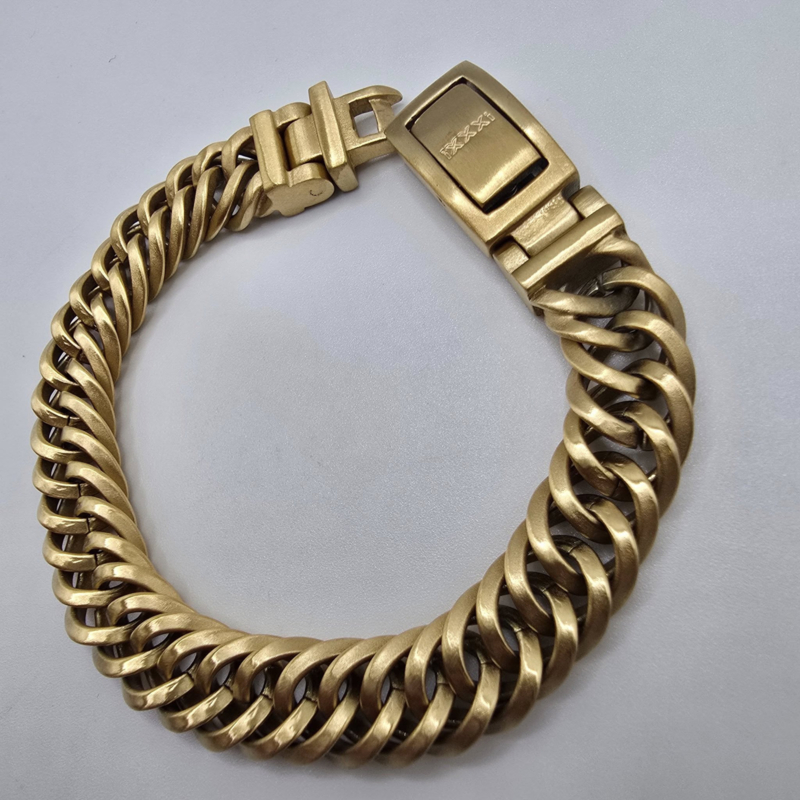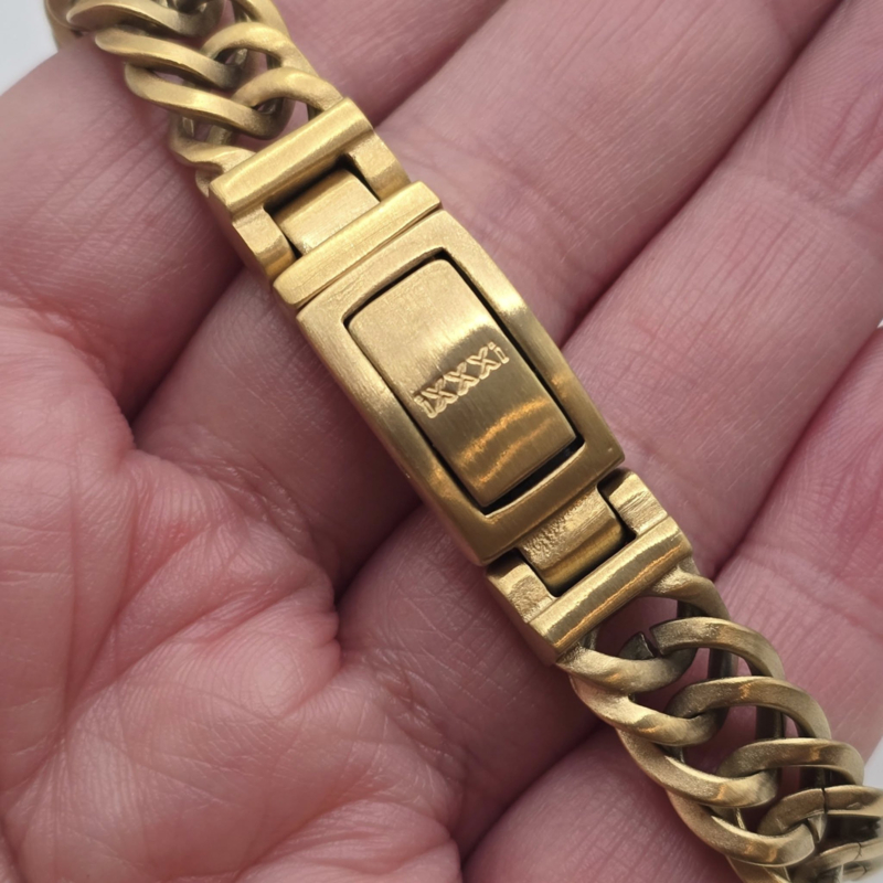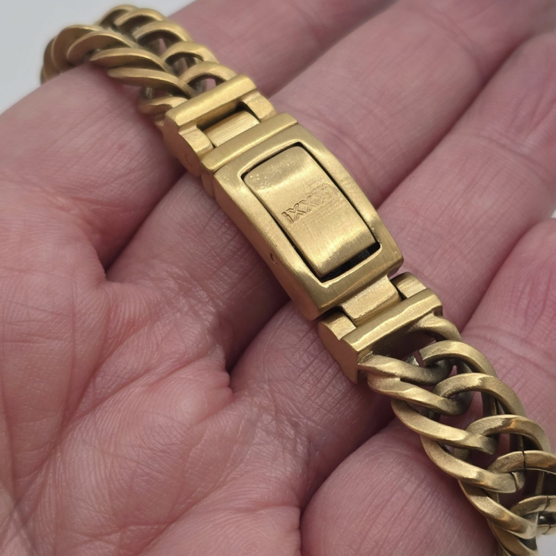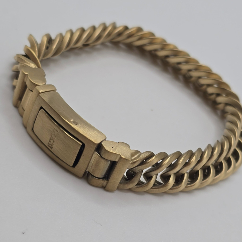 Artikelnummer: M0818020010 OverzichtDe iXXXi MEN armband Peru is gemaakt van stainless steel in de kleur mat goud. De bracelet is voorzien van een fijne schakel die in een rij van twee schakels breed in elkaar zit gevlochten. Bracelet Peru is voorzien van een langwerpige, mat goudkleurige stalen sluiting die perfect past bij het design van de gehele armband. De iXXXi heren armband Peru is verkrijgbaar in de maten 19, 20, 21 en 22. Mix en match met verschillende armbanden uit de iXXXi MEN collectie en maak zo jouw look compleet!