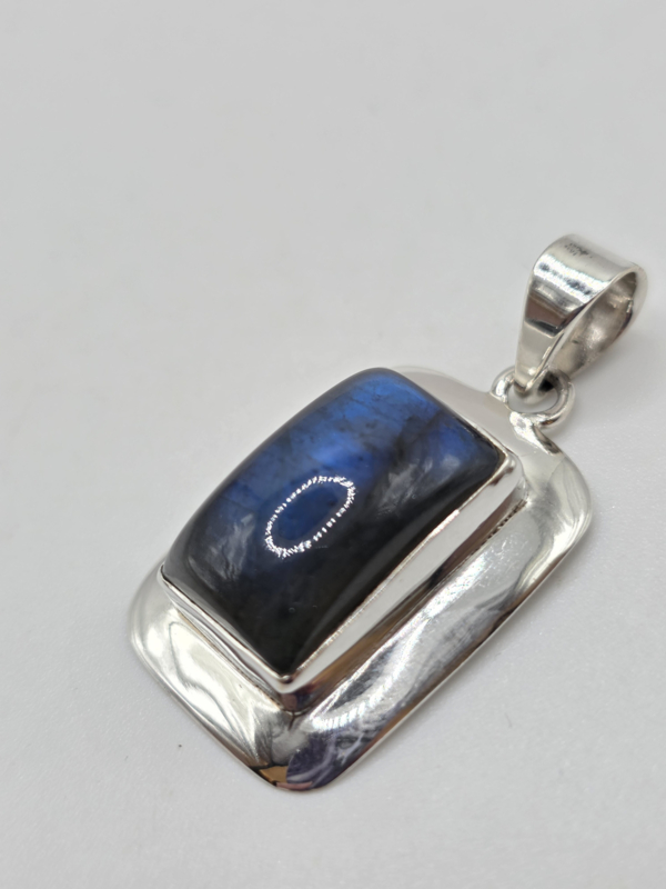 Echt zilveren ketting hanger met Labradoriet Rechthoek