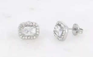 Artikelnummer: BS1617E0480 OverzichtOorbellen van roestvrij staal met studs, gemaakt van een rechthoekige kristal, gezet met kleine zirconiumoxiden.