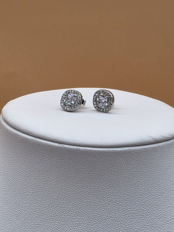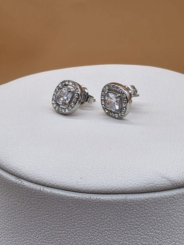 Artikelnummer: BS1616E0480 OverzichtOorbellen van roestvrij staal met studs, gemaakt van een vierkant kristal, gezet met kleine zirconiumoxiden.