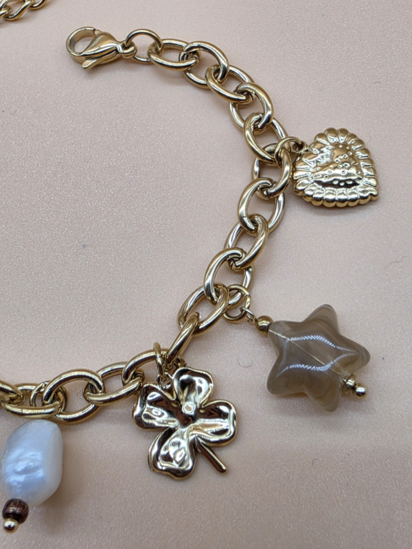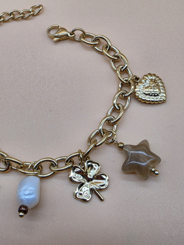 Armband met zon, hart, bloem, ster, natuursteentjes.