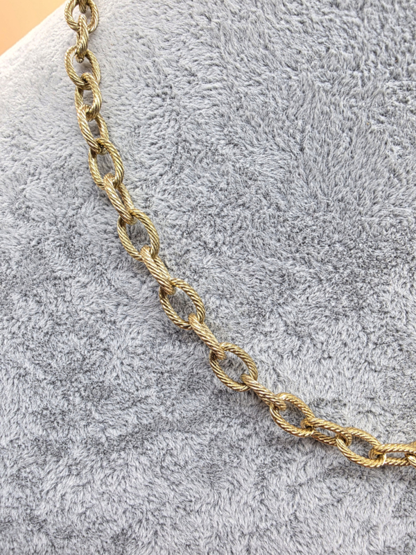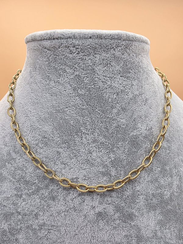 Stainless steel collier, ovaal schakels bewerkt. 40 plus 7 cm.