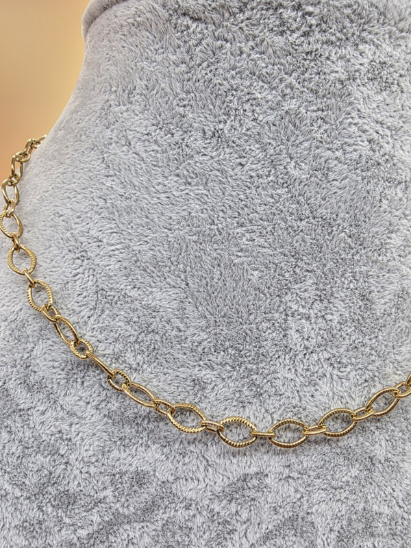 Stainless steel collier, ovaal schakels bewerkt en glad, 39 plus 7 cm.