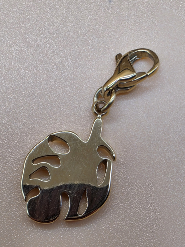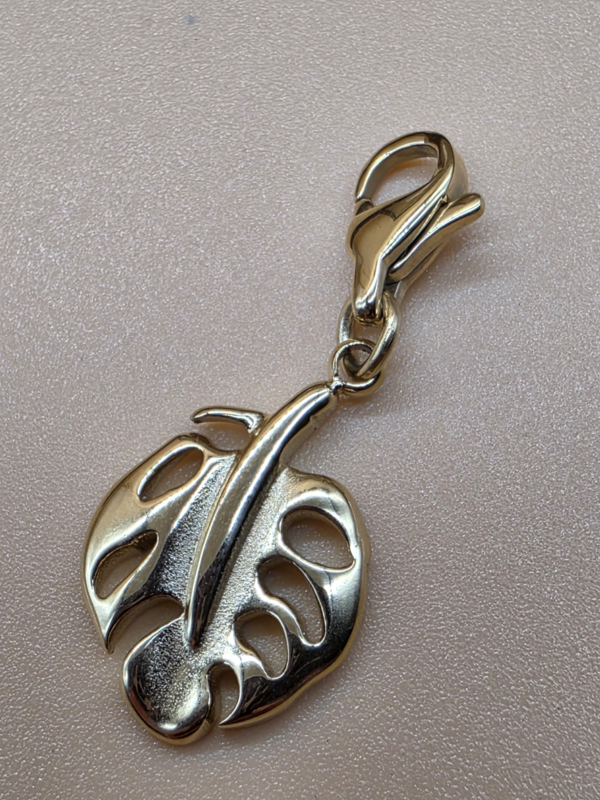 RVS charm Blad. Goud.