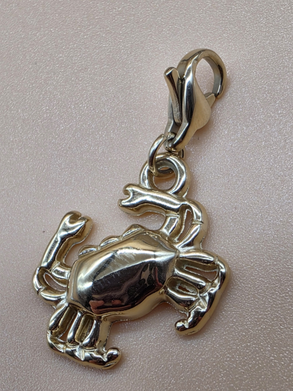 Roestvrijstalen bedel bestaande uit een hangertje in de vorm van een krab.