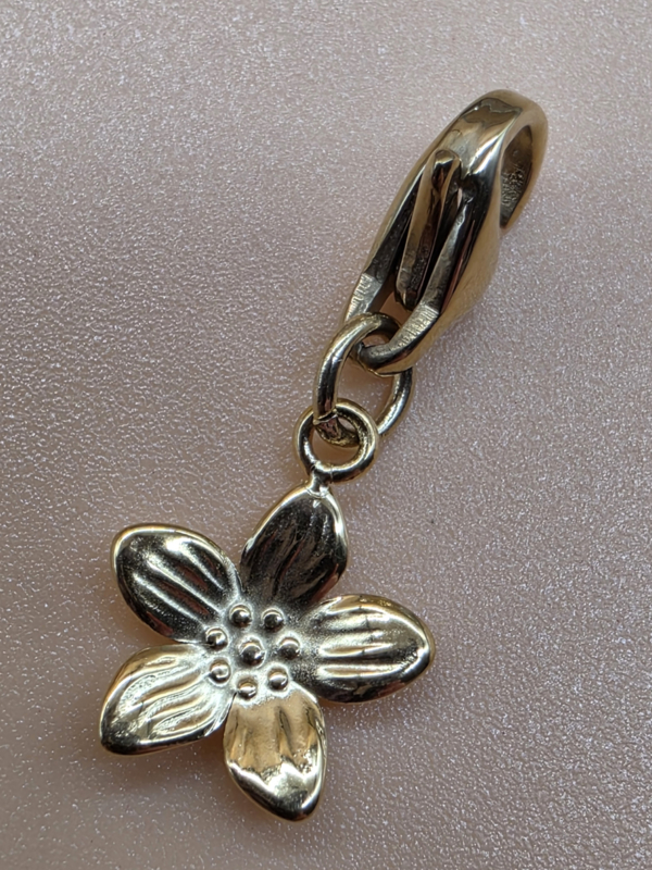 RVS charm. Bloem. Goud.