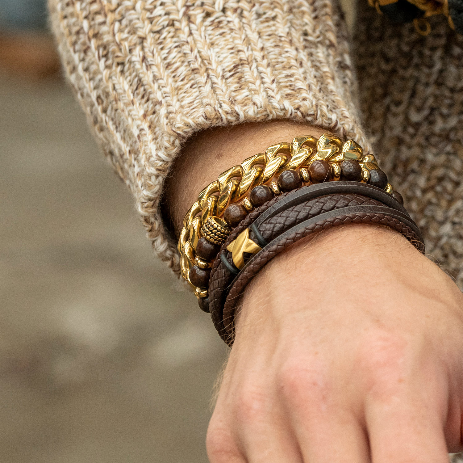 Ixxxi Men armband Elias Mat goud maat 21-22.5 cm