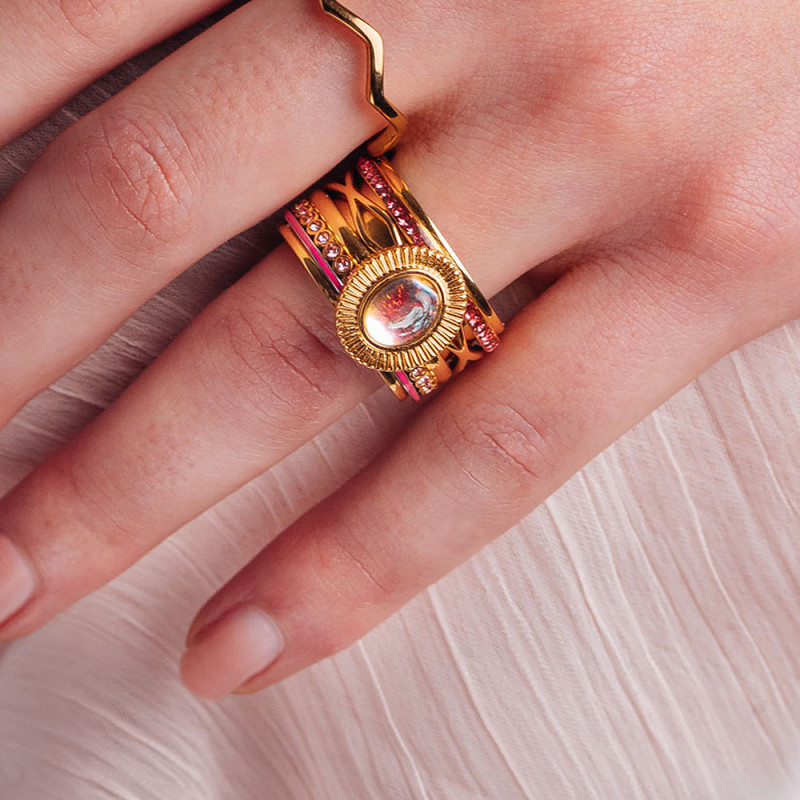 De iXXXi vulring Line Pink is een 1mm brede vulring gemaakt van stainless steel en is voorzien van een goudkleurige plating. In de ring zit een rozekleurige lijn verwerkt. De goudkleurige Line Pink is verkrijgbaar in de maten 17 t/m 21. Geef je iXXXi ringcombinatie in een handomdraai een 'touch of pink' met de vulring Line Pink.