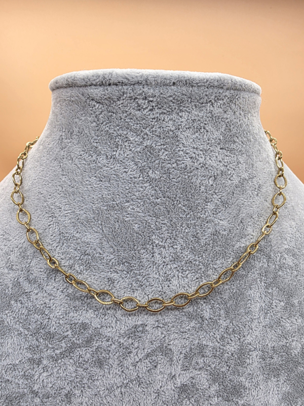 Stainless steel collier, ovaal schakels bewerkt. 40 plus 7 cm.€ 28,00 € 14,95-45%